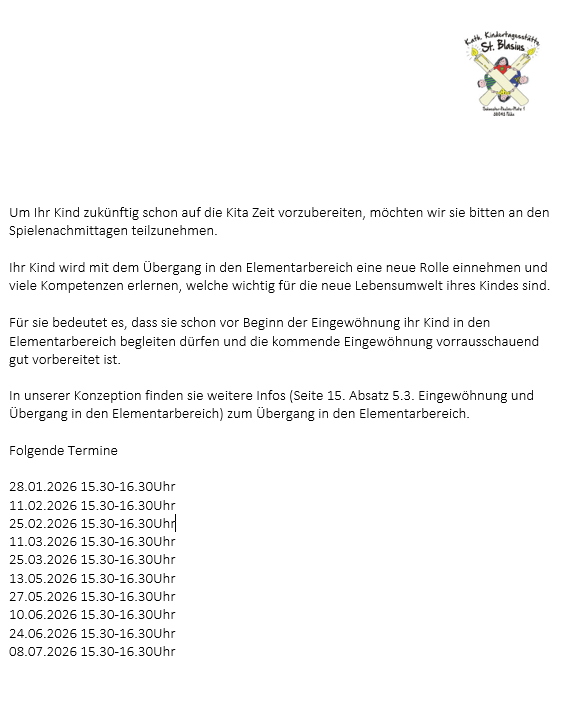 • SPIELENACHMITTAG IN DER KITA
