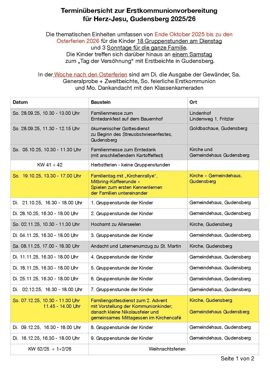 Zum Download finden Sie hier als PDF-Datei die finale Terminübersicht zur anstehenden Erstkommunion.