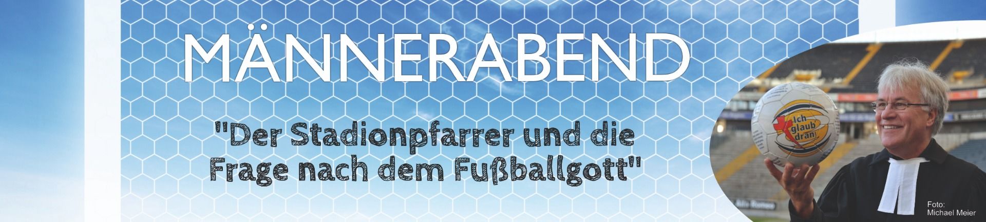 Am Freitag, 23.11.18 veranstaltet die Katholische Kirchengemeinde St. Kilian Kalbach in der Mehrzweckhalle Uttrichshausen einen Männerabend. Zum Thema „Der Stadionpfarrer und die Frage nach dem Fußballgott“ referiert Pfarrer Eugen Eckert. Er ist Stadionpfarrer in der Frankfurter Commerzbank – Arena und Referent der Evangelischen Kirche in Deutschland für Kirche und Sport. Einblicke wird er geben in seine Tätigkeit als Stadionpfarrer, zu dem wird er Schnittstellen beleuchten von Fußball und Glauben am Beispiel der Frage nach dem Fußballgott.