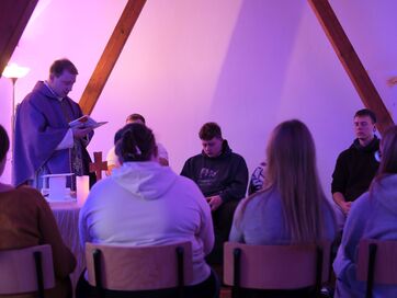 Kurz vor dem Mittagessen begrüßten wir Kaplan Schöppner, der nicht nur mit uns aß, sondern anschließend auch mit uns die Heilige Messe feierte, bevor er wieder aufbrach.