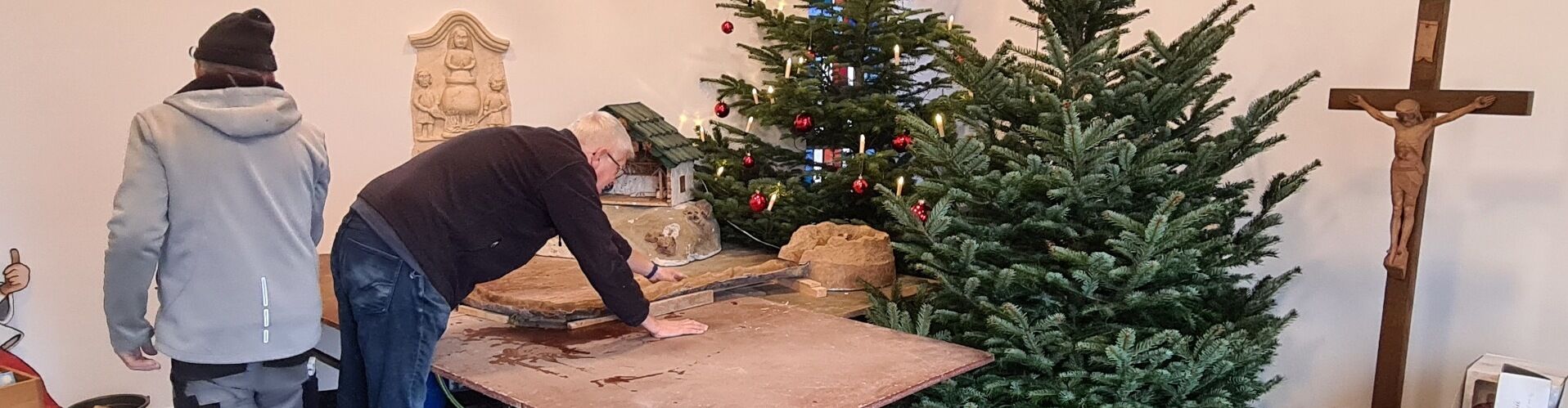 Jährlich werden in St. Vitus die Christbäume und die Krippenlandschaft in der Kirche für das kommende Weihnachtsfest aufgestellt. Federführend wird der Aufbau langjährig durch die Familien Klüh und Räsch geleitet. In diesem Jahr wurde eine besonders stattliche Tanne und die Krippenlandschaft mit echtem Bachlauf aufgestellt. Ausbesserungen und Ergänzungen, in diesem Jahr ein Zaun, werden in Modellbaukunst durch Norbert Betz vorgenommen.