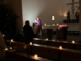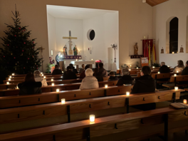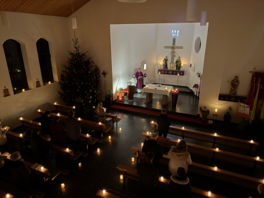 Die aufgestellten Lichter und musikalische Gestaltung verlieh der Eucharistiefeier eine besonders stimmige Atmosphäre.