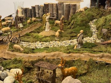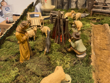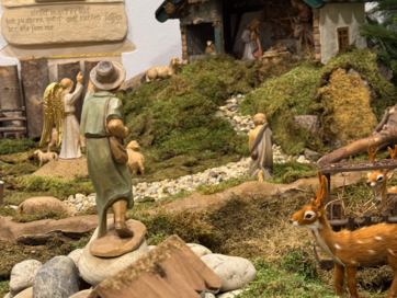Durch diese Krippenlandschaft führt ein Weg mit einem Bachlauf hin zum Stall. Auf dem Weg dorthin muss man eine kleine Brücke überqueren, um zur Heiligen Familie mit Ochs und Esel zu gelangen. Der Engel unterhalb des Stalls verkündet die frohe Botschaft. Einige Hirten lagen noch auf dem Feld mit ihren Schafen; andere Hirten sind dem Ruf des Engels bereits gefolgt. Ein kleiner Hirte kniet vor dem Stall, ein weiterer Hirte in der Mitte der Landschaft hält Ausschau von einem kleinen Steinhügel nach dem Neugeborenen im Stall.