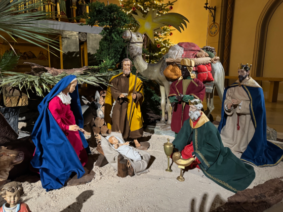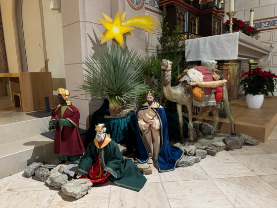 Danach rief Herodes die Sterndeuter heimlich zu sich und ließ sich von ihnen genau sagen, wann der Stern erschienen war. Dann schickte er sie nach Bethlehem und sagte: Geht und forscht sorgfältig nach, wo das Kind ist; und wenn ihr es gefunden habt, berichtet mir, damit auch ich hingehe und ihm huldige. Nach diesen Worten des Königs machten sie sich auf den Weg. Und der Stern, den sie hatten aufgehen sehen, zog vor ihnen her bis zu dem Ort, wo das Kind war; dort blieb er stehen. Als sie den Stern sahen, wurden sie von sehr großer Freude erfüllt. Sie gingen in das Haus und sahen das Kind und Maria, seine Mutter; da fielen sie nieder und huldigten ihm. Dann holten sie Ihre Schätze hervor und brachten ihm Gold, Weihrauch und Myrrhe als Gaben dar. Weil ihnen aber im Traum geboten wurde, nicht zu Herodes zurückzukehren, zogen sie auf einem anderen Weg heim in ihr Land.