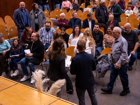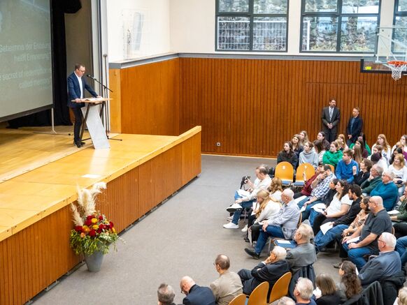 Neben der Familie Stern und der gesamten Schüler:innenschaft waren als Gäste in die Turnhalle geladen: der Vertreter des Schulträgers, Herr Andreas Greif; der Landtagsabgeordnete und ehemalige Stiftsschüler Sebastian Sack; André Schlipp, ebenfalls ehemaliger Schüler in seiner Funktion als Bürgermeister von Amöneburg, die ehemaligen Schulleiter bzw. Stellvertreter Herr Hans Gottschlich, Hans Georg Lang und Thomas Feldpausch sowie Herr Forst, Frau Fischer, Herr Dörr und Herr Weitzel, die bei der Organisation mit ihrer fachkundigen Hilfe und Expertise zur Seite gestanden haben.