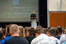 Familie Stern war nach der Gedenkveranstaltung sichtlich bewegt, emotional an-gefasst und dankbar für die Einladung und die Freundschaft, die sie nicht nur an diesem Tag erfahren hat. Dies betonte sie auch in den Gesprächen mit den Schüler: innen der Jahrgangsstufe Q3, mit denen sie ihre Geschichte auch persönlich nachfühlbar machte. »Das Geheimnis der Erlösung heißt Erinnerung« — »und«, so möchte man als Erfahrung dieses Tages an der Stiftsschule ergänzen: »freundschaftliche Verbundenheit «, wie die Nachricht von Urie Stern nach seiner Rückkehr nach New York bestätigt: