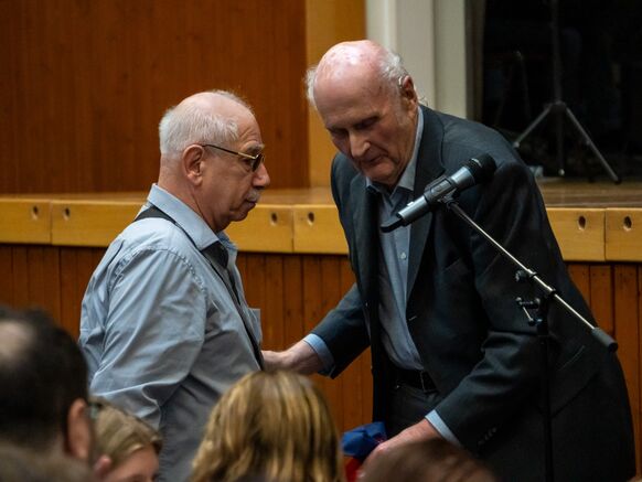 Bewegend und anrührend waren die Worte, die der ehemalige Nachbar von Minna und Siegfried Stern und Freund von Urie Stern zum Schluss der Gedenkfeier an diesen richtete, in denen er die tiefe Freundschaft betonte, die Cimiottis mit Sterns — auch während der Zeit des Nationalsozialismus unter großer eigener Gefahr — verbunden hat und bis heute verbindet. So wunderte es auch niemanden, dass Herr Cimiotti und Urie Stern einander umarmten als Menschen, die nicht nur ein Leben, sondern vor allem ihre lange gemeinsame Geschichte und Freundschaft verbindet. »Seid Menschen« Dieses Wort der verstorbenen Margot Friedländer erhielt so eine ganz neue und tiefe Bedeutung.