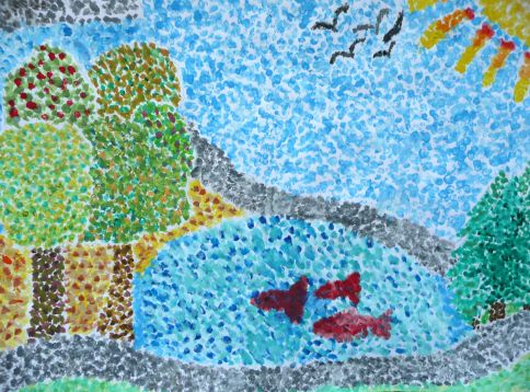 Hier sehen Sie Bilder der Klasse 6c aus dem Schuljahr 2007/08 zum Stil Pointilismus.