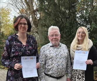Die Heilpädagogin Frau Lachmann und die Leiterin Frau Glusa der katholischen Kindertagesstätte Heilig Geist in Vellmar haben am 14.11.2025 erfolgreich ihre Ausbildung zur Qualitätsmanagementbeauftragten (QMB) abgeschlossen. Mit diesem Abschluss erweitern sie ihre Expertise in der Qualitätsentwicklung und leisten einen wertvollen Beitrag zur Weiterentwicklung der gesamten Einrichtung.