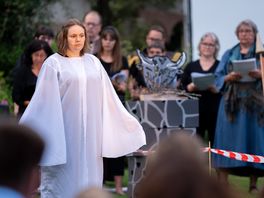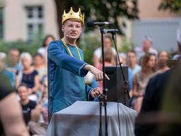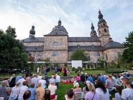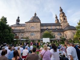 Eine besondere Herausforderung: Der Premierenabend fand Open Air statt. Im Domgarten des Fuldaer Doms lauschten zahlreiche Zuschauerinnen und Zuschauer bei untergehender Sonne und bestem Wetter dem Musical.