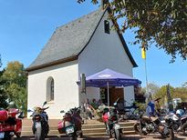 Etwa 60 Biker kamen bei strahlendem Herbstwetter, um DANKE zu sagen zum Heiligtum. Pfr. Kownacki aus Dipperz begeisterte mit seiner originellen Ansprache und eine kleine Musikgruppe unterstützte den Gesang.