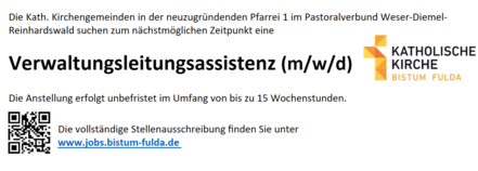 Die Kath. Kirchengemeinden in der neuzugründenden Pfarrei 1 im Pastoralverbund Weser-Diemel-Reinhardswald suchen zum nächstmöglichen Zeitpunkt eine